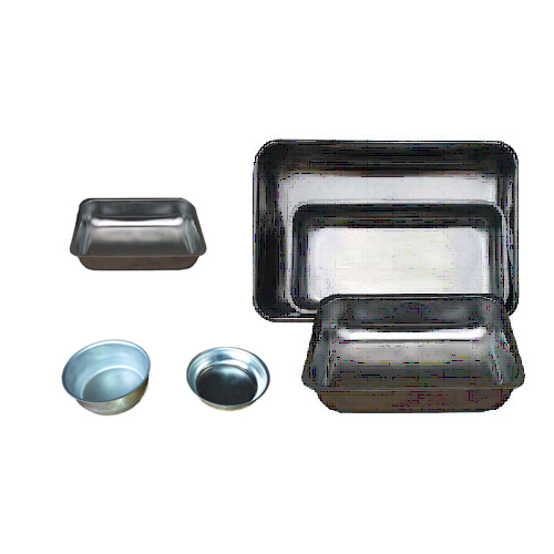 Bandejas estampadas con aristas interiores redondeadas, especiales para el secado de muestras metalúrgicas, las que permiten una fácil y segura limpieza.