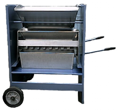 Diseñados para reducir una muestra a no más de la necesaria. Construido en acero inoxidable AISI 304 de 1mm de espesor, consta de una tolva y tres bandejas receptoras en el mismo material, que permiten recoger la muestra ya dividida en dos.