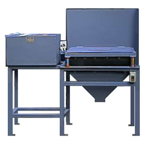 Fabricado en acero al carbono pintado con anticorrosivo y esmalte. Cuenta con una tolva de descarga de acero inoxidable con aristas redondeadas para evitar acumulación de muestra